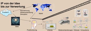 | Begleitphase >> | Kreation Neues schaffen | Ausübungsfreiheit Freedom to operate | Schutz IP anmelden | Verwertung Nutzung in die Wege leiten |